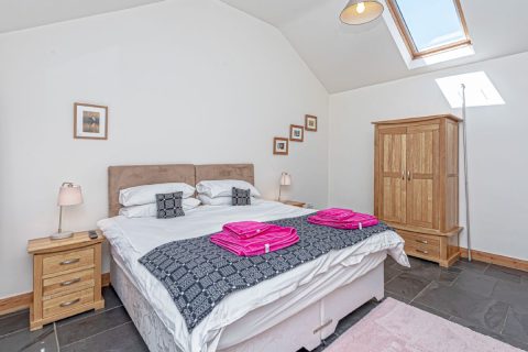 Glas y Dorlan cottage sleeps four plus cot but is very popular with couples who enjoy a one-bedroom/bathroom discount. It has been renovated to a high standard throughout, to provide comfortable and relaxing holiday accommodation on our farm and fishery. With underfloor heating and log-fire, it’s a great place for a break at any time of the year. It’s set apart from the other cottages, closer to the farm, but can be booked with our other cottages to sleep a total of 24 guests.
