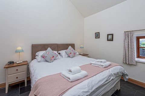 Glas y Dorlan cottage sleeps four plus cot, but is very popular with couples who enjoy a one bedroom/bathroom discount. It has been renovated to a high standard throughout, to provide comfortable and relaxing holiday accommodation. With underfloor heating and log-fire it’s a great place for a break at any time of the year. It’s set apart from the other cottages, closer to the farm, but can be booked with our other cottages to sleep a total of 24 guests. Fishing on all lakes is included free of charge in this cottage unless guests want to take fish for the table.