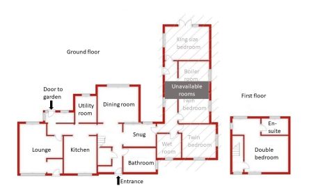 The door from the snug that leads through to the ground floor bedroom corridor will be locked during your stay, allowing you to benefit from the reduced occupancy price.