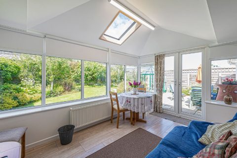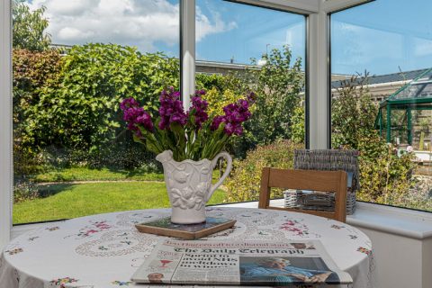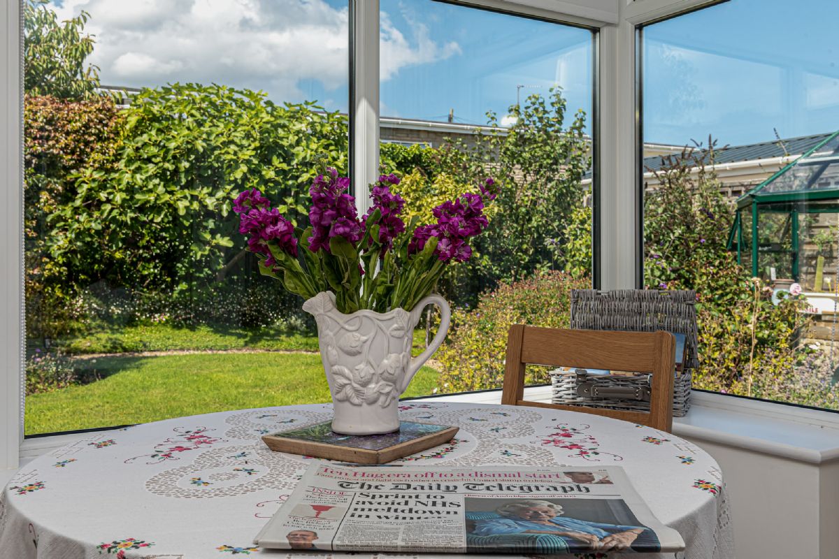 Lovely view to to the rear garden. Sofa for 2 and a table and chairs.