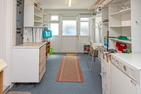 The utility room has a washing machine, toilet and plenty of room to store your wet clothes after a day at the beach.