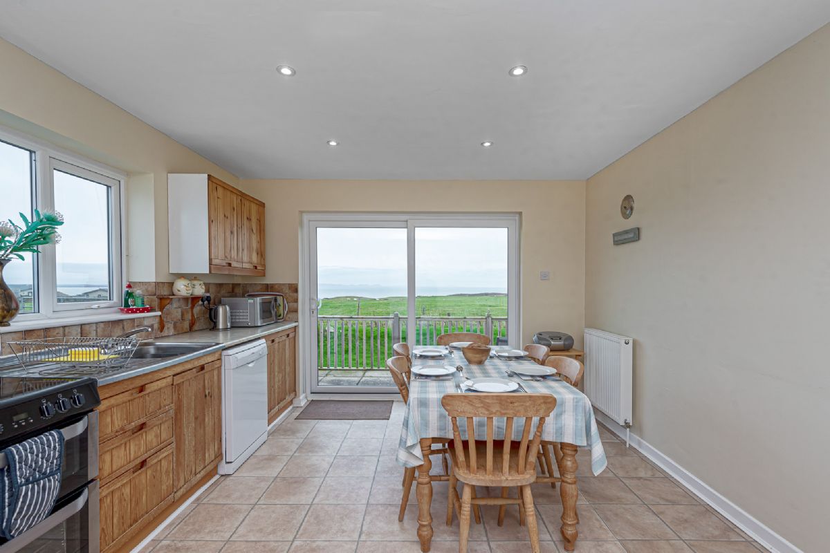 - Kitchen: Fully fitted and flooded with natural light, the kitchen opens onto a sea-facing patio through French windows. Modern appliances—including a double oven cooker with an induction hob, fridge/freezer, and dishwasher—make meal prep a breeze. There’s even a separate utility room with a washing machine and dryer.