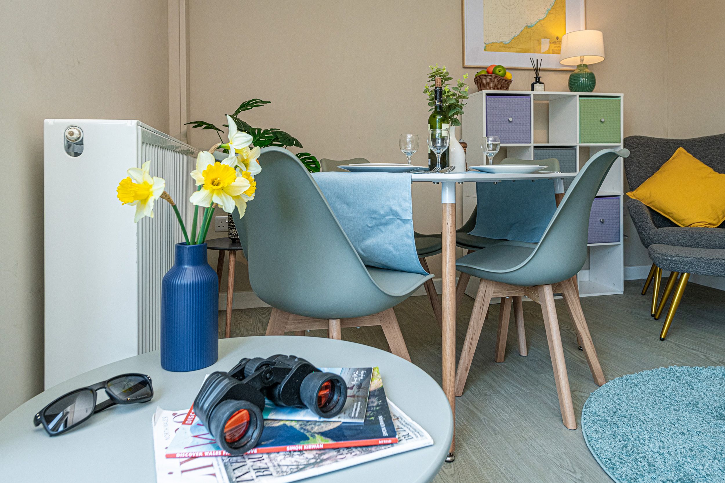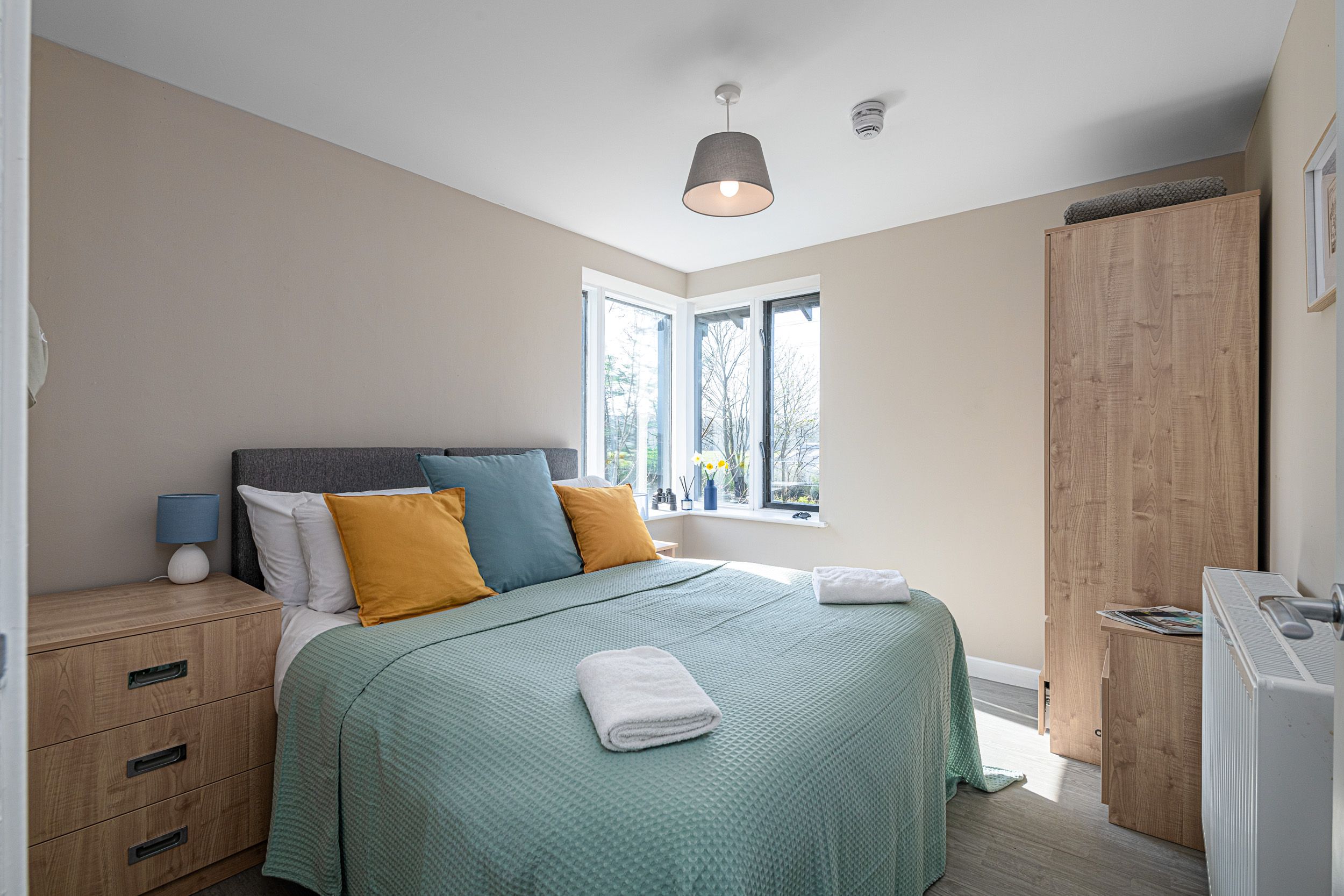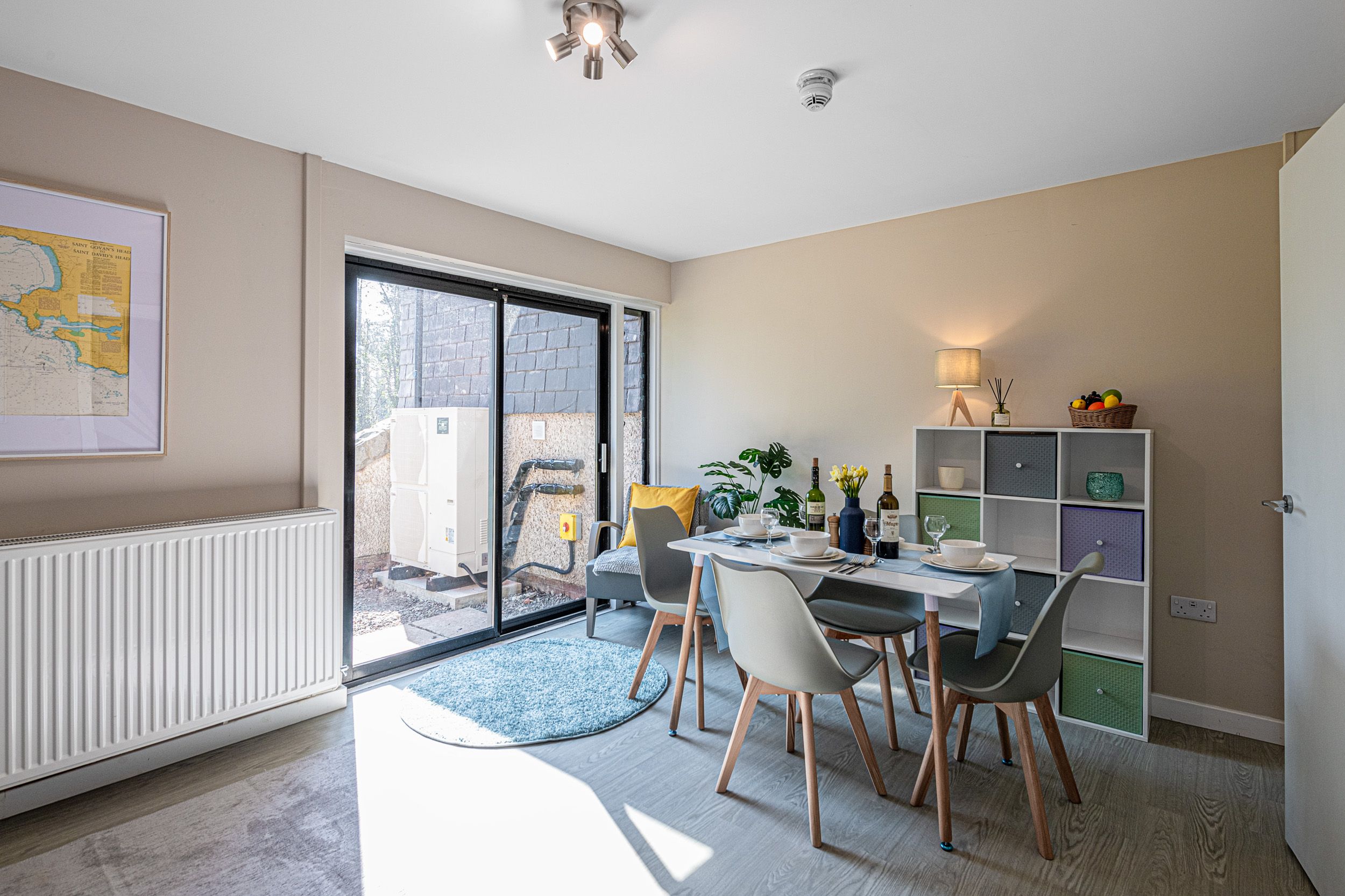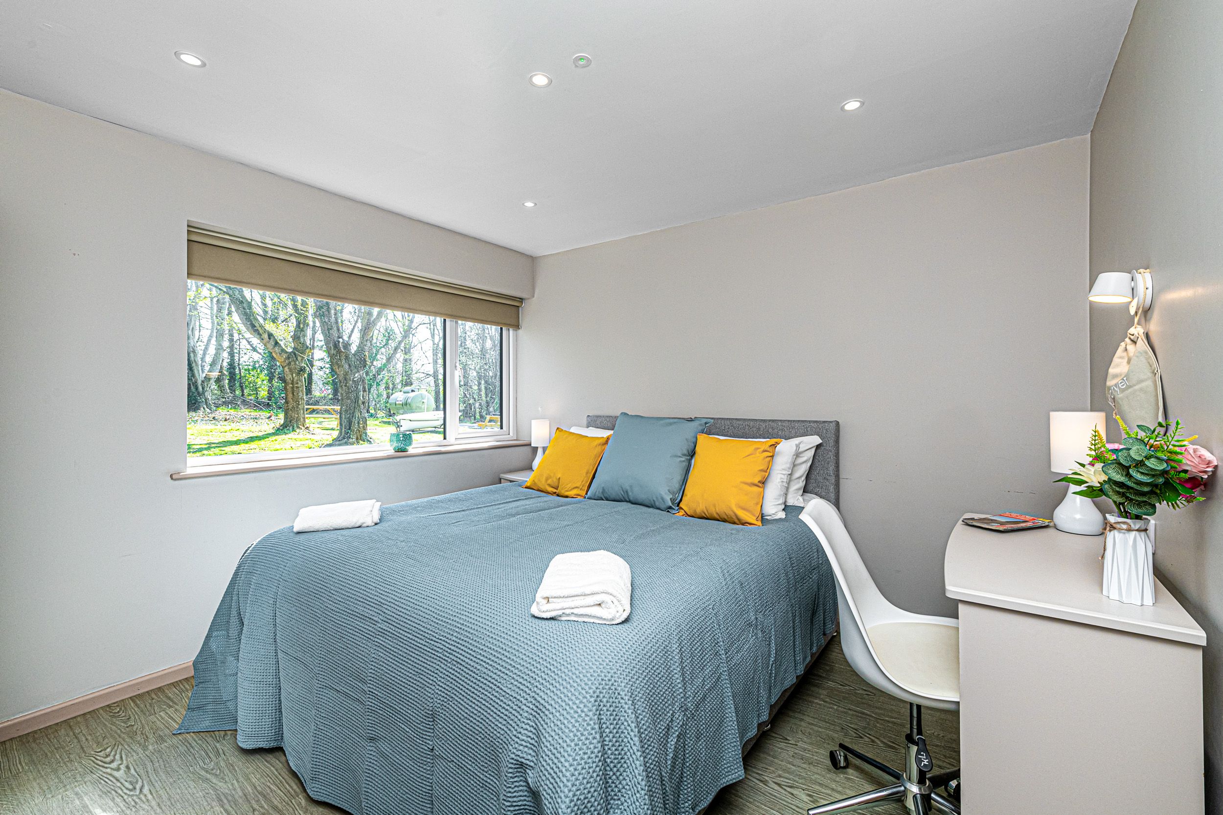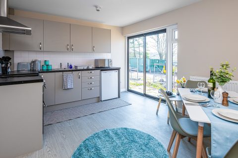 Outdoor Space: Small patio area with picnic table, plus access to Plas Menai’s outdoor grounds, mountain bike track, and cycle pump track