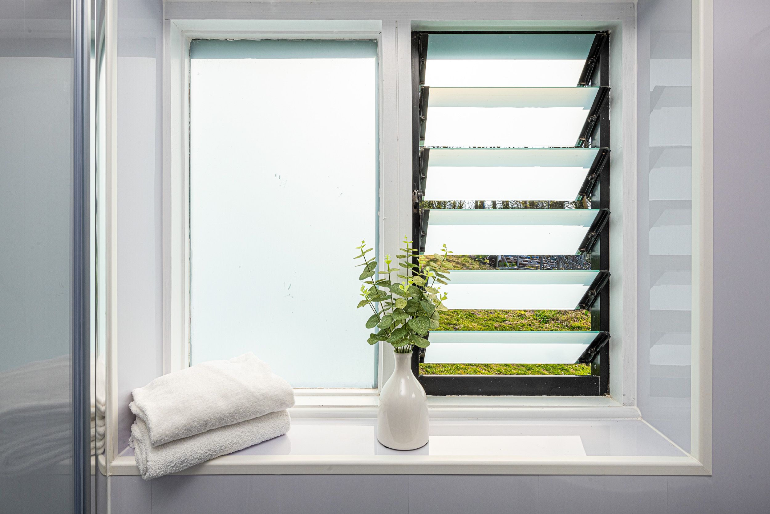Kitchen: Compact yet fully equipped, featuring an under-counter fridge, freezer, cooker, and microwave